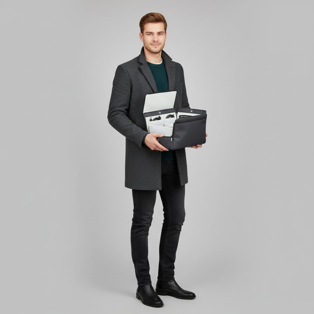 Dank seines modularen Aufbaus und seiner hochwertigen Verarbeitung kombiniert dieser Organizer Funktionalität mit modernem Design – ideal für den Alltag, das Büro oder Reisen.