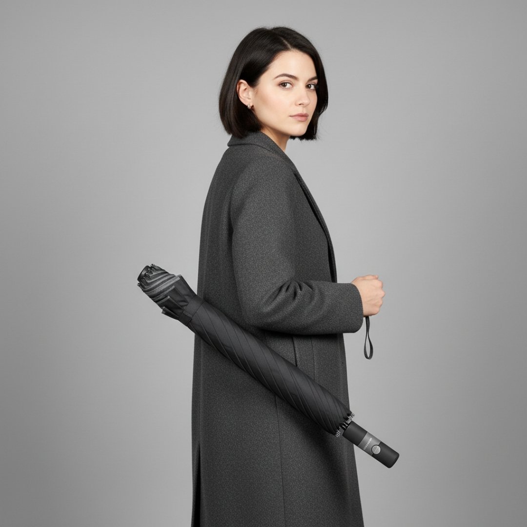 Dieser nachhaltige Regenschirm wurde für den täglichen Gebrauch in städtischen Umgebungen entwickelt und bietet zuverlässigen Schutz bei jedem Wetter.